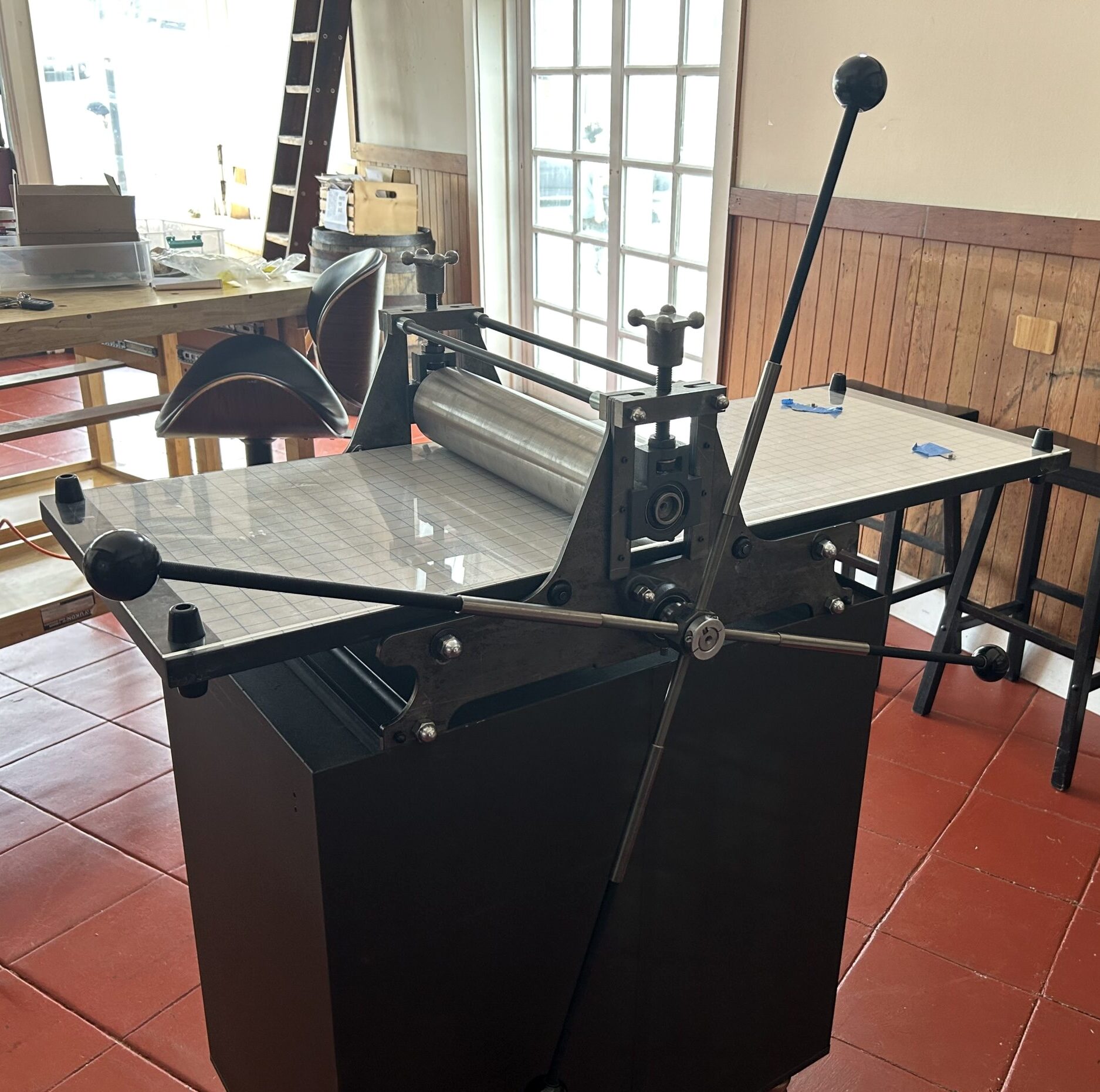 Unfortunately, life and work took over for almost a decade and my art practice fell off until 2020 when I re-committed to finding my creative spark. I picked up printmaking and glass working right before COVID hit and have been interweaving the two pursuits ever since. In 2023 I put my mechanical engineering skills to use and built the custom etching press we use in printing classes and demos.